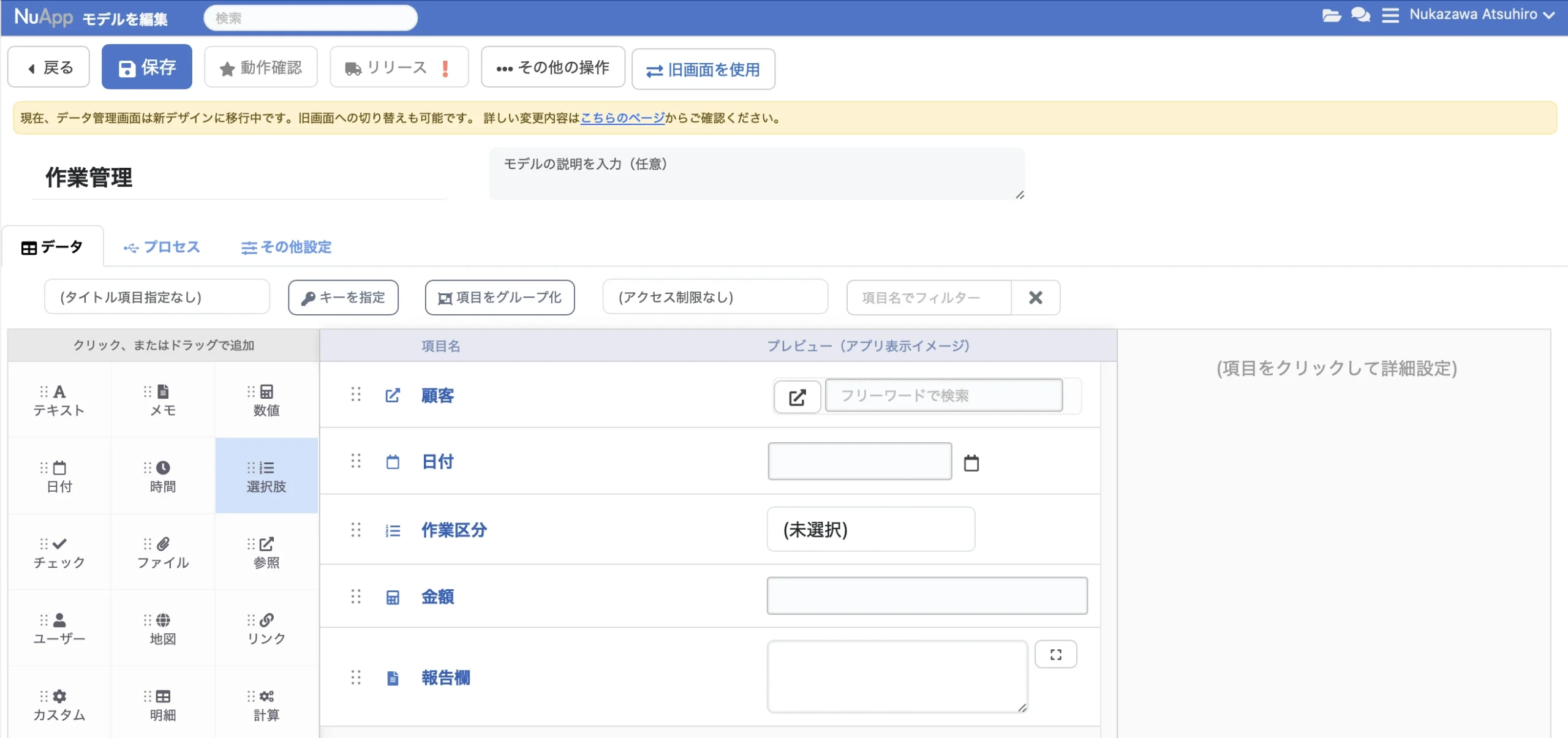 NuAppでは、アプリ内で扱う業務等の事象を、「モデル」として設定します。